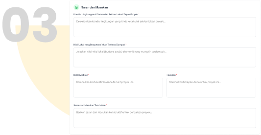 Masyarakat dapat memberikan tanggapan atau masukan terhadap rencana kegiatan/usaha yang diumumkan dengan cara: